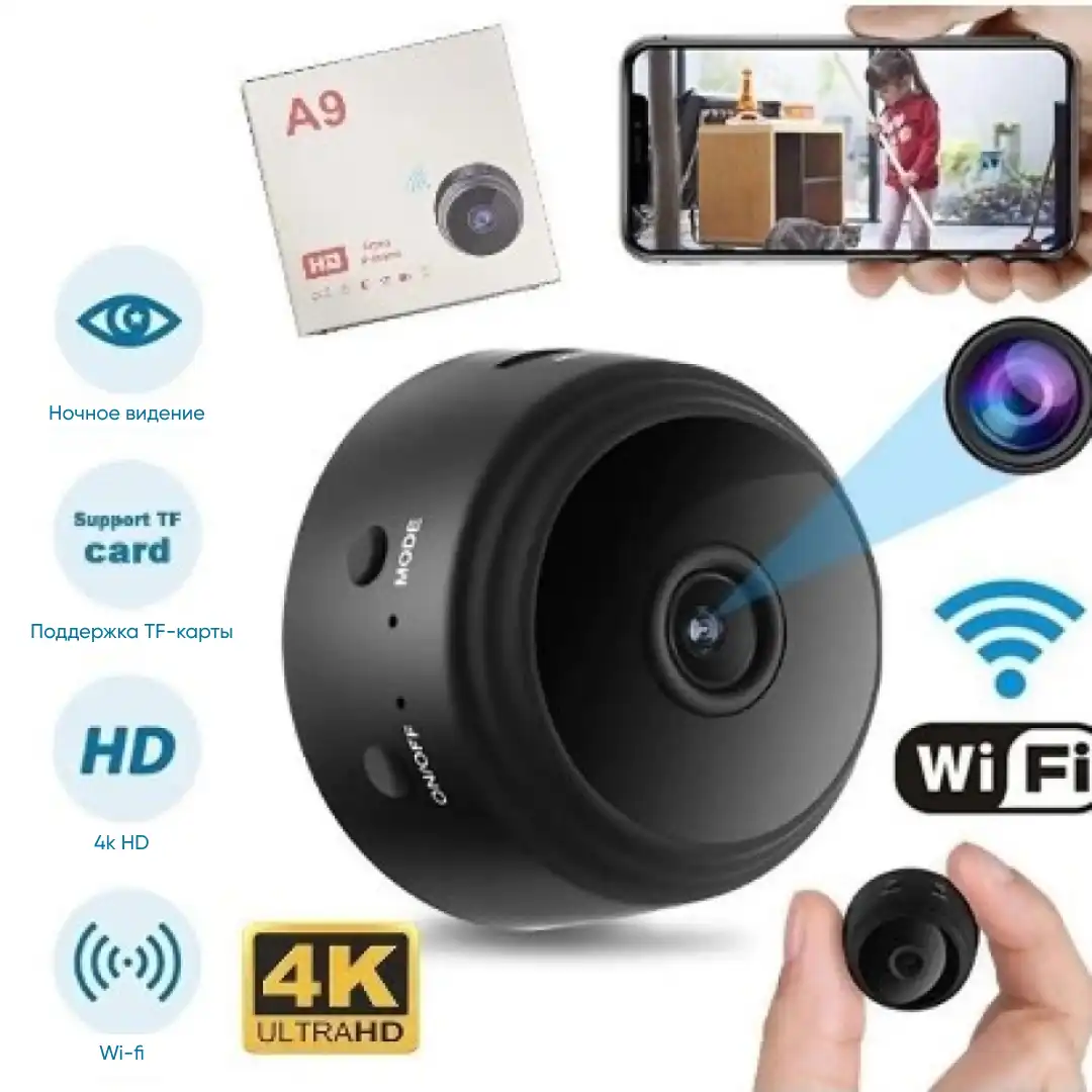 Миниатюрная HD IP P2P камера с Wi-Fi А9 для видеонаблюдения – усовершенствованная мини-камера, которая способна закрыть собой практически все потребности в видеонаблюдении.